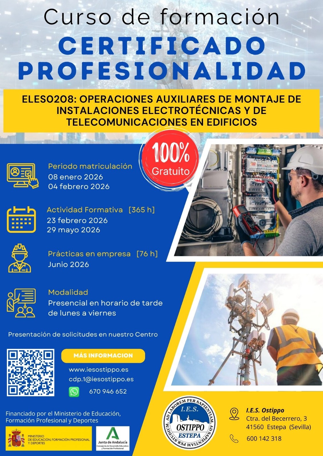 Plazo de matriculación: del 8 de enero al 4 de febrero de 2026 en la Secretaría del IES Ostippo.